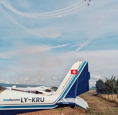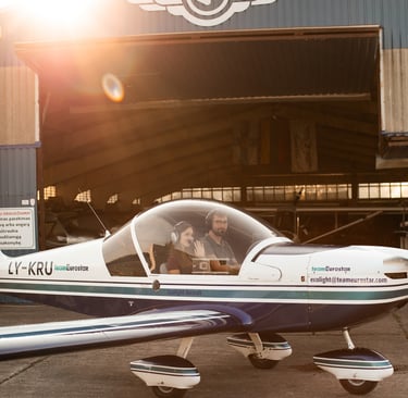 Esame komanda "Nuo sraigto!" - tikri aviacijos entuziastai. Mėgaujamės laiku ore ir ten tvyrančia ramybe, grožimės nuostabaus grožio Lietuvos kraštovaizdžiais. Skrydis mums nėra tik technika ar procedūros. Tai - jausmas.
