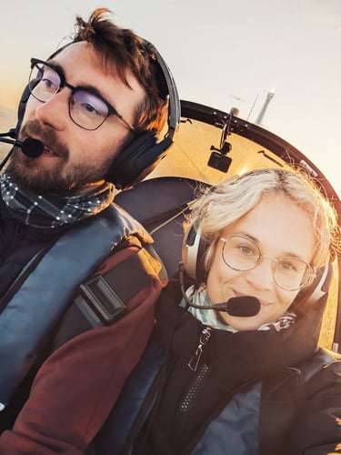 Esame komanda "Nuo sraigto!" - tikri aviacijos entuziastai. Mėgaujamės laiku ore ir ten tvyrančia ramybe, grožimės nuostabaus grožio Lietuvos kraštovaizdžiais. Skrydis mums nėra tik technika ar procedūros. Tai - jausmas.